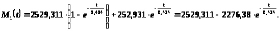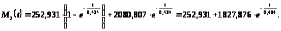 Затем разобьём второй участок на четыре интервала и определим значения моментов М>2>(t>2>) по (6.8). Причём t>2> = (3,789 – 0,705)/4 = 0,771 с.