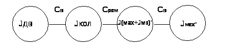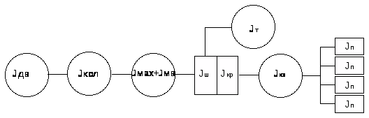 Т.к. в исходном задании не оговорены данные по рабочему механизму, то принимаем Jш + Jк + Jт + Jкв + 4 * Jп = Jмех = 0.5 кгм3. Следовательно заданная расчётная схема примет вид представленный на рисунке 1.5.