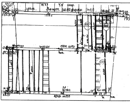В таблице 2.8 вычислены углы отклонения от вертикали подъемных канатов и углы наклона валов копровых шкивов.