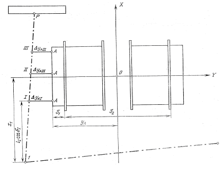 Рисунок 2.12 - Схема определения углов отклонения от вертикали головных подъемных канатов способом ординатной съемки