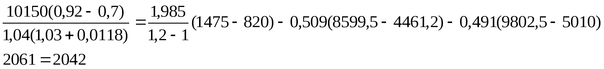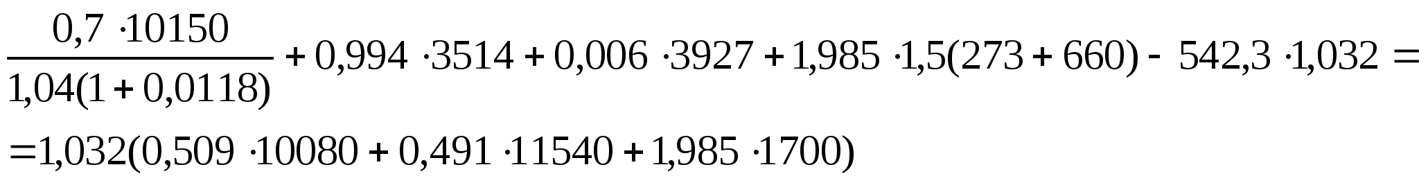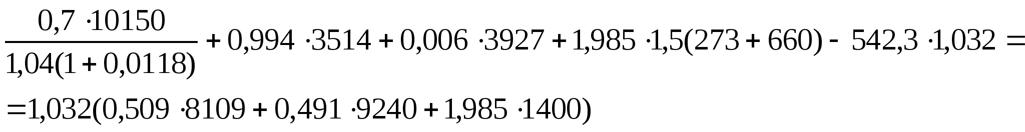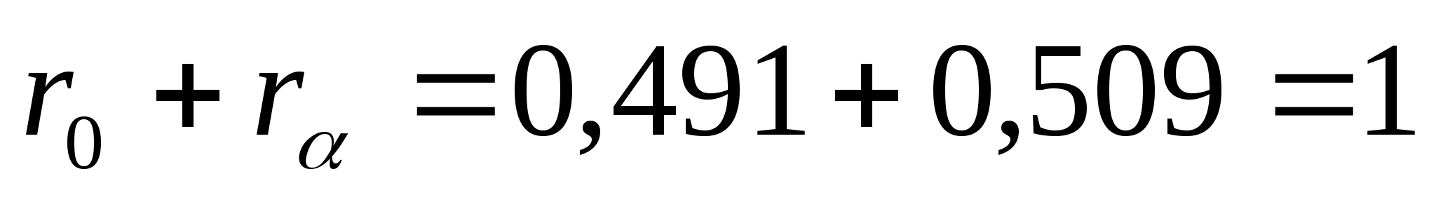 Сумма объемных долей продуктов сгорания при α=1 и избыточного воздуха тождественно равна единице: