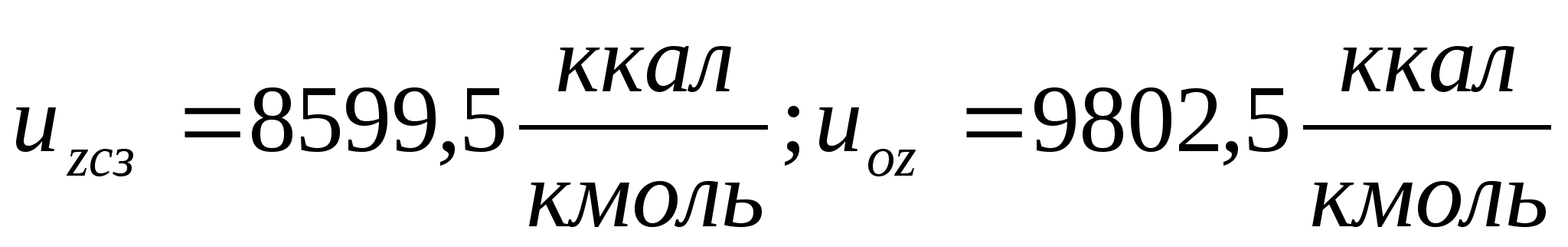 где и>с.з.> - внутренняя энергия 1 кмоль свежего заряда при температуре соответствующей точки цикла, указанной в индексе; и>0> - внутренняя энергия 1 кмоль продуктов сгорания при α= 1 и температуре соответствующей точки цикла, указанной в индексе.