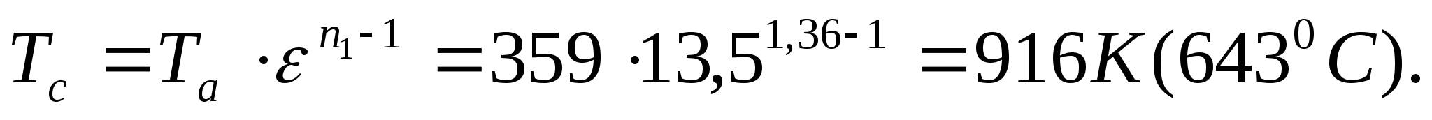 Показатель политропы сжатия n>1> и температуру в конце сжатия Т>с> определяют из системы уравнений.