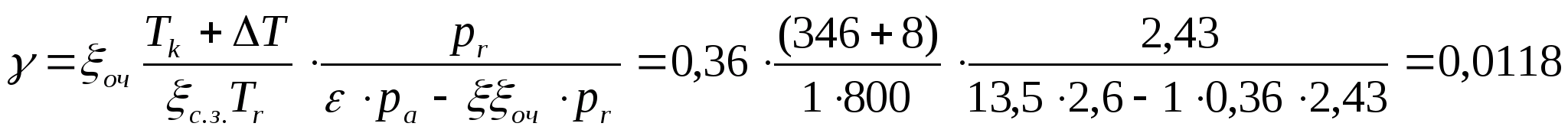 ξ - коэффициент, учитывающий различия в теплоемкостях рабочей смеси при температуре Т>а> и остаточных газов при Т>r>;