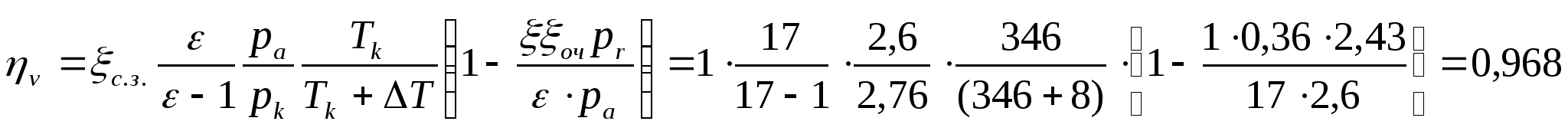 ΔТ - величина подогрева свежего заряда. Принимаем ξ>с.з.>=ξ= 1.