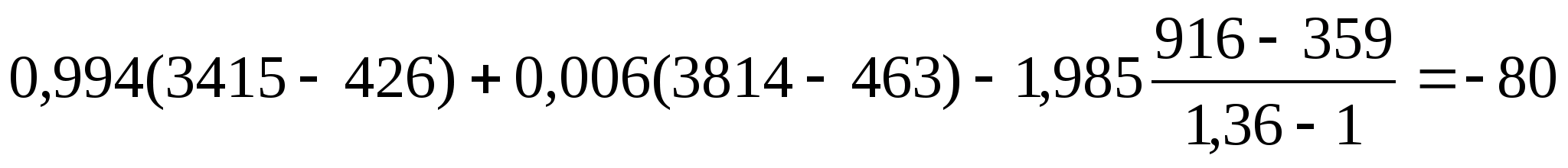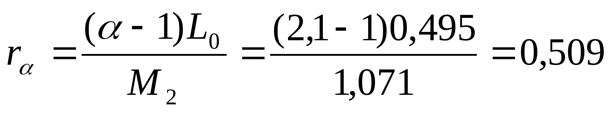 Объемная доля избыточного воздуха в продуктах сгорания: