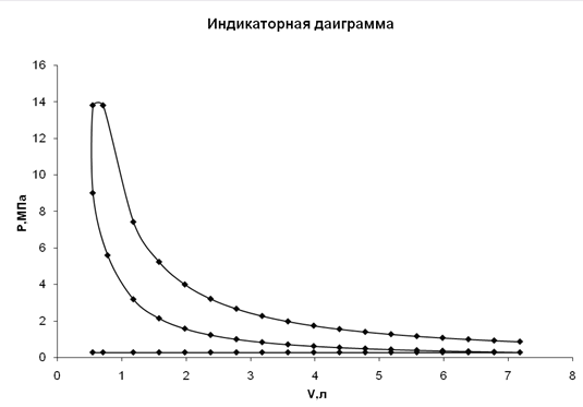 Зная параметры характерных точек расчетного цикла, можно построить индикаторную диаграмму в функции от рабочего объема.