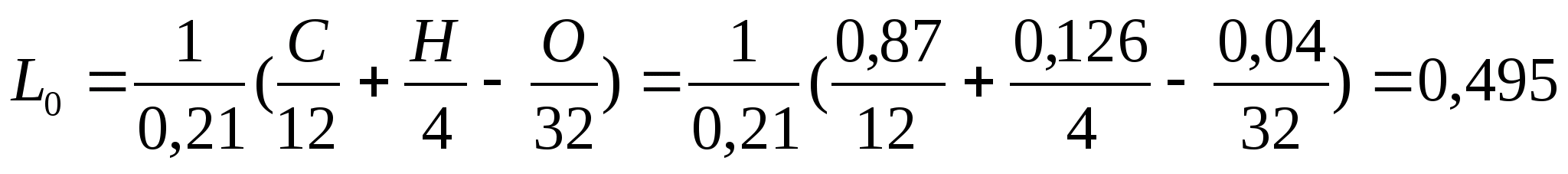 Стехиометрическое количество воздуха на 1 кг топлива: