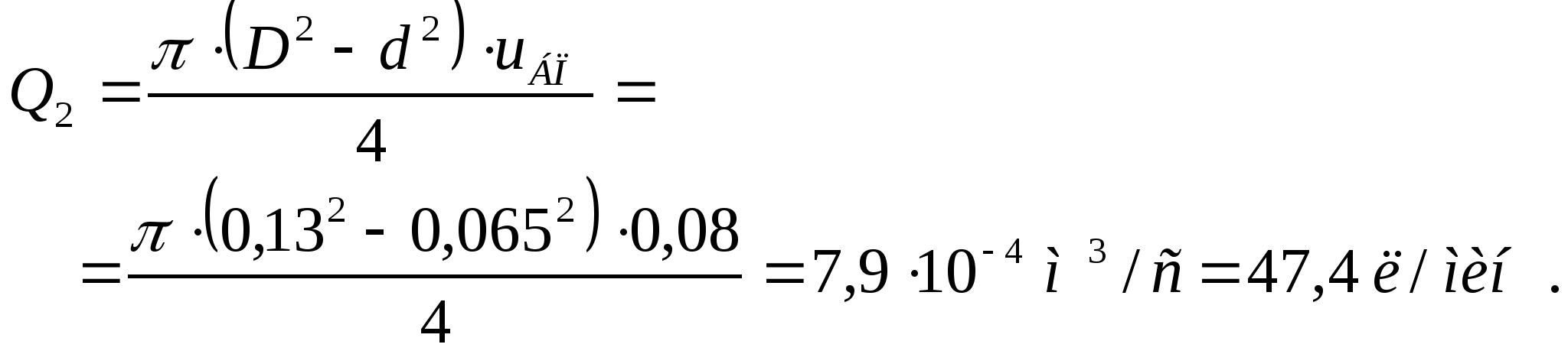 Расход жидкости и диаметр трубопровода в линии слива при v>2> = 2 м/с