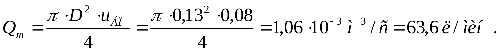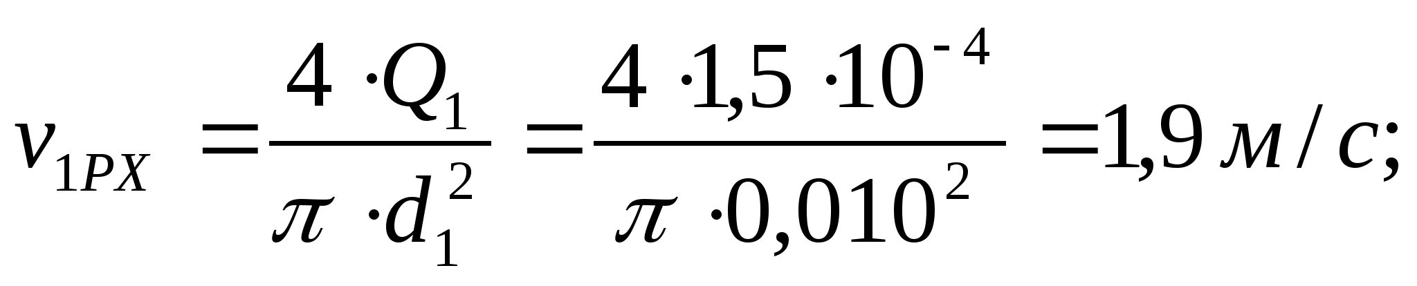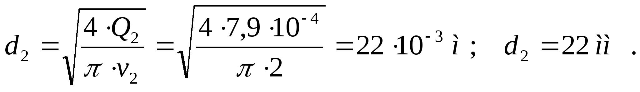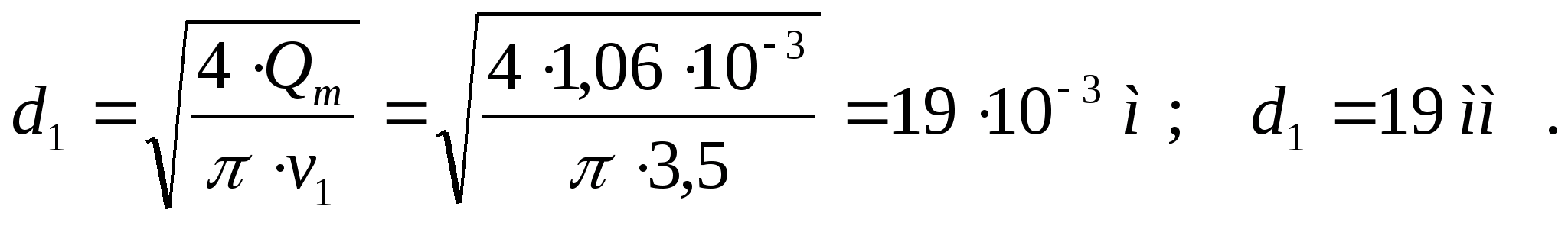 Диаметр трубопровода в линии нагнетания при допустимой скорости потока v>1> = 3,5 м/с составляет