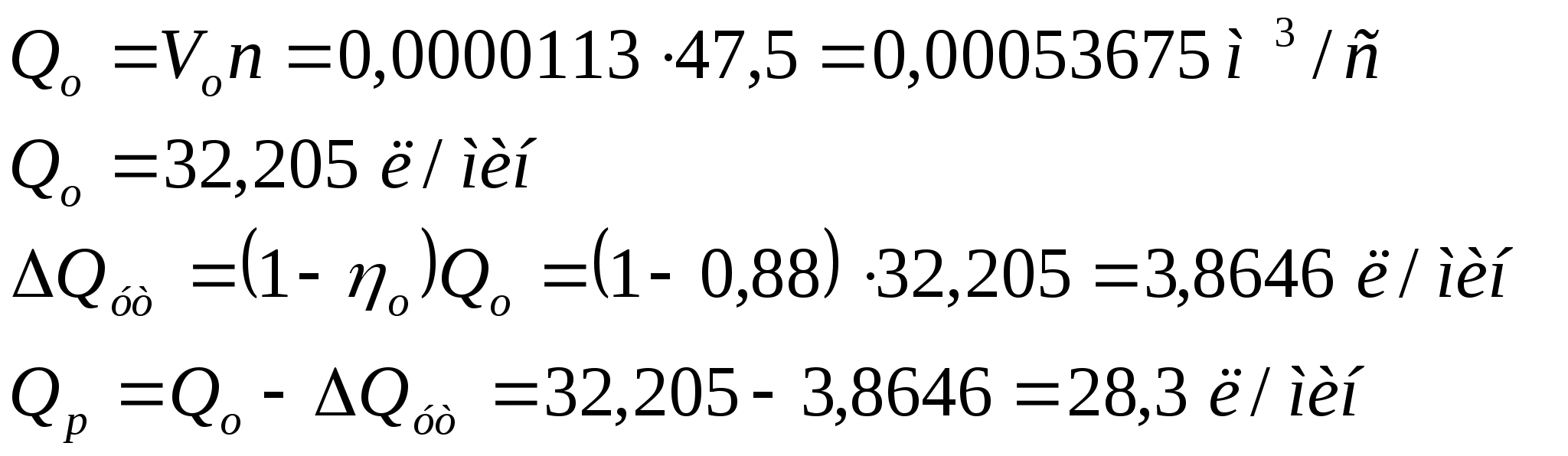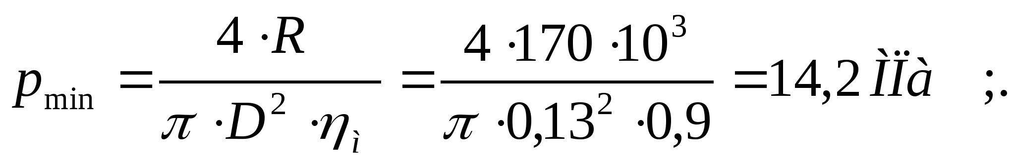 рабочее давление в системе:p>эф> = 12,5 МПа;