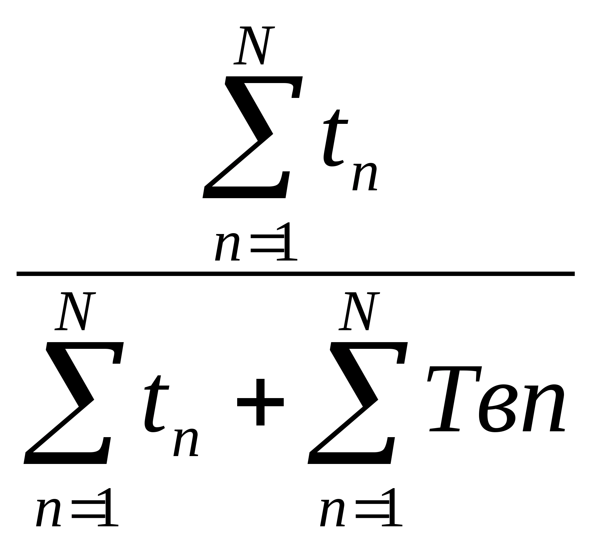 Статистически k>ти> определяется отношением суммарного времени пребывания объектов в работоспособном состоянии (t>n>) к произведению числа наблюдаемых объектов (N) за время эксплуатации (Т>экс>):