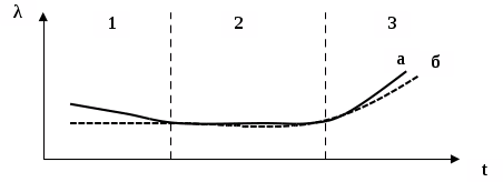 Рисунок 1 – Зависимость интенсивности отказов (λ) от продолжительности эксплуатации (t)