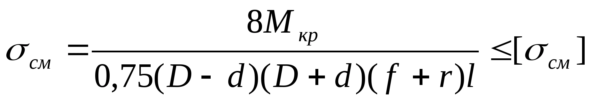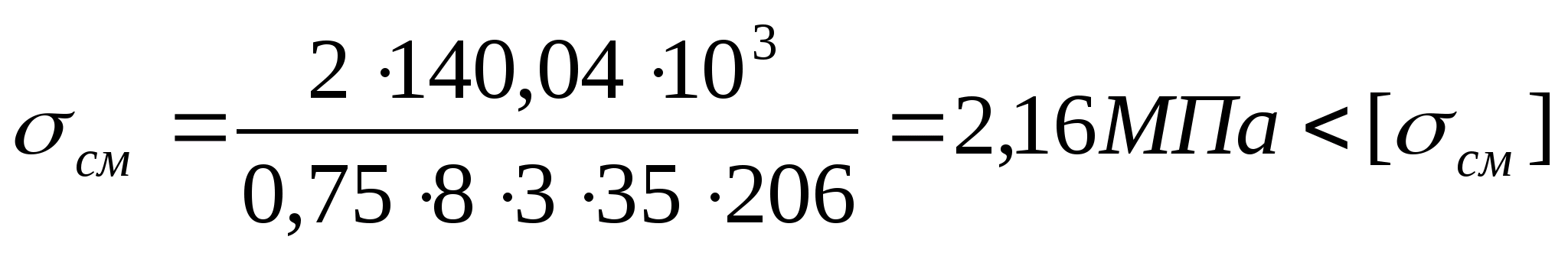 [>см>] – предельное допускаемое напряжение на смятие; (для нормализованной Стали 45 [>см>]=150 МПа).