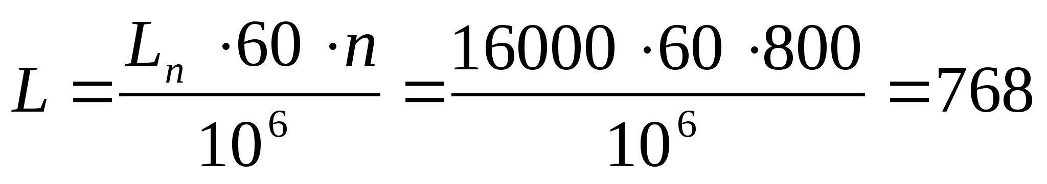 определяем L, при известной частоте вращения n=800 об/мин (см. табл. 2.1) и задавшись L>n>=16000 ч: