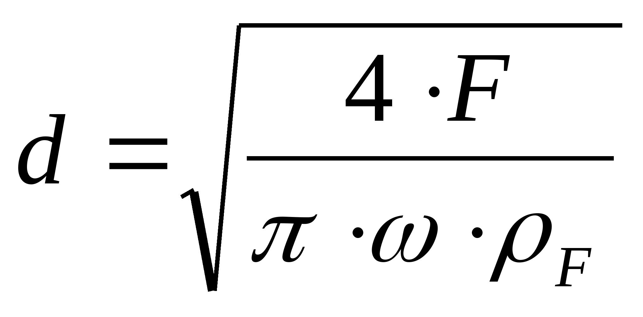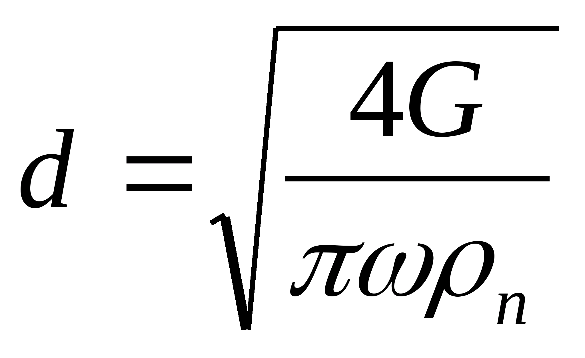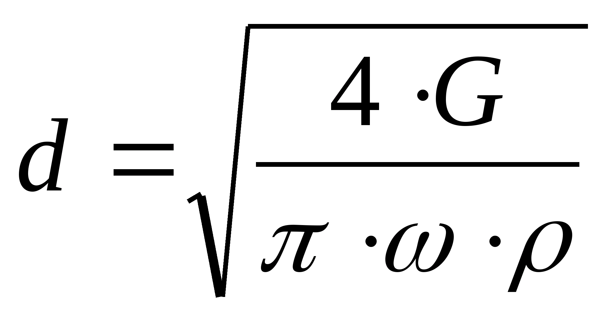 Внутренний диаметр патрубка определяется из уравнений расхода: