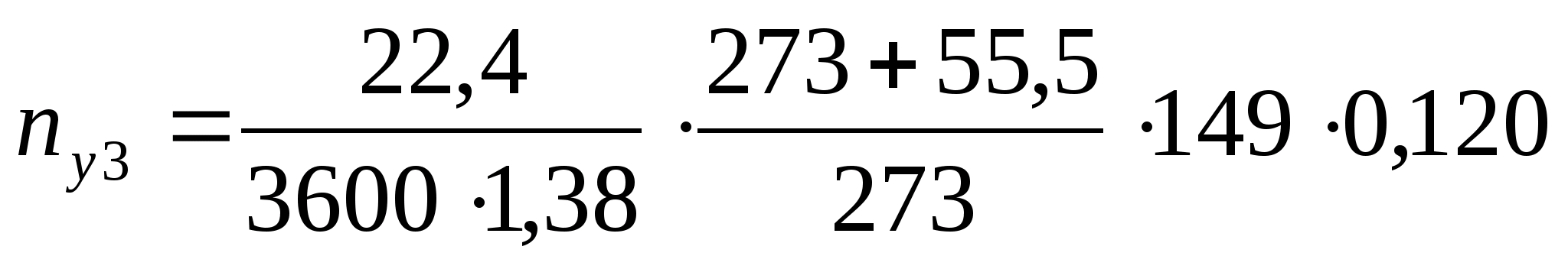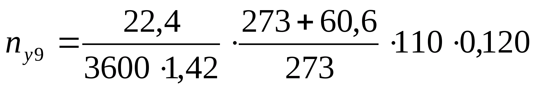 V>ж> – объемный расход газовой смеси при рабочих условиях, м3/с: