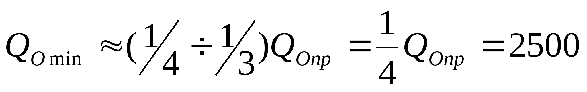 минимальный Q>о >>min> = 2500 м3/час;