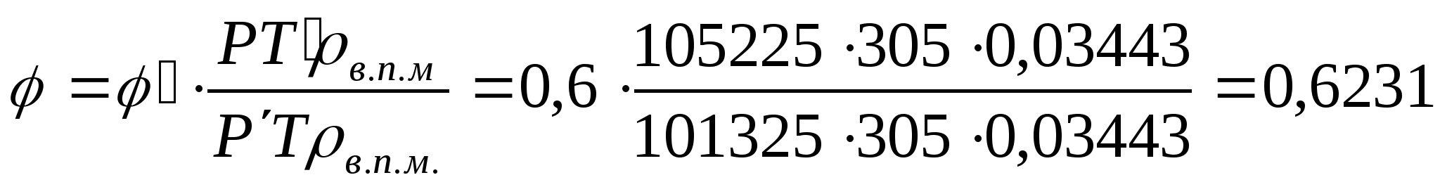 Запишем уравнения массового расхода при рабочих (р.у.) и нормальных (н.у.) условиях: