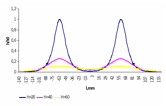 Полученные распределения имеют степени неоднородности Dэксп=20% и Dтеор=32%. Причиной различия является то, что в установке используется не два, а система из шести попарно расположенных магнетронов. Таким образом, при напылении одной парой магнетронов, потоки от двух других, в меньшей степени, но воздействуют на образец, чем делают распределение более равномерным.