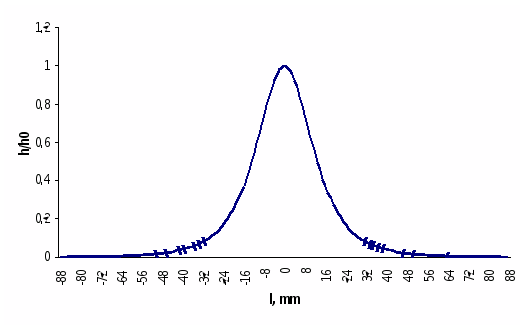 Рис.12. Теоретическое и эксперементальное распределение толщины покрытия.