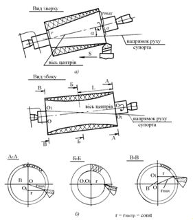 Рис. 2. Схема утворення систематичної похибки при точінні конічної поверхні радіальними різцями
