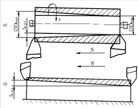 У окремих випадках при обточуванні за два встановлення оброблена заготовка має дві осі з найбільшим кутом перетину осей, рівним 2α (риc. 4, б).