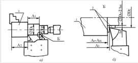 б) необхідність внесення поправки на динаміку процесу при визначенні розмірів еталону, що досить складно, тому при обробці перших заготовок партії необхідне додаткове регулювання положення інструментів і упорів.