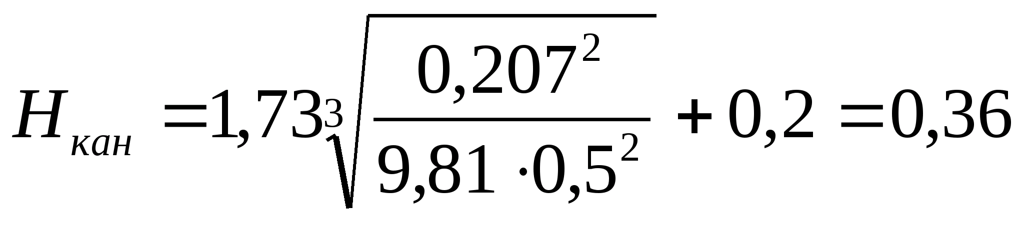 где q>кан >- расход воды в канал в м3/с, принимаем равным q>w>=0,207 м3/с;