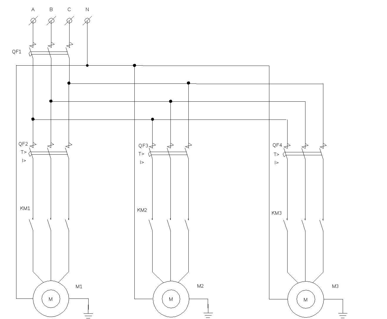 Схема управління працює таким чином: при натисненні на кнопку SB2 схема стає в пам‘ять і одночасно вмикається двигун компресора 1, а потім і компресора 2. Оператор керує тиском за допомогою кнопок управління, відповідно до показів манометра тиску. В разі якщо тиск за допомогою двох компресорів не доходить до норми технологічного процесу оператор за допомогою кнопки SB3 – вмикає двигун компресора 3 , що повинен дати змогу вийти в системі на робочий тиск.