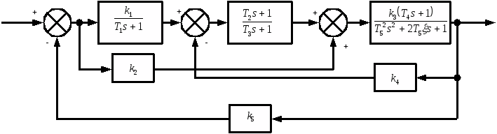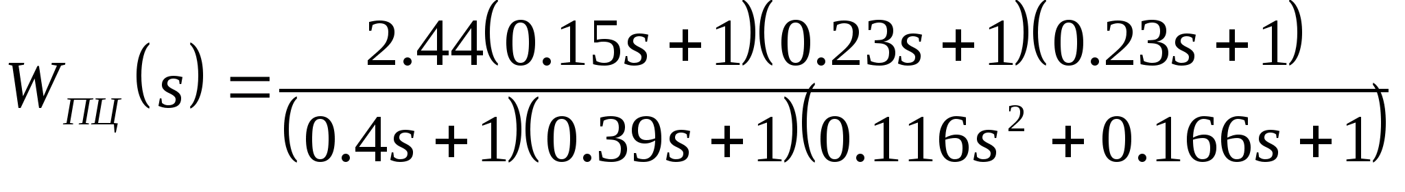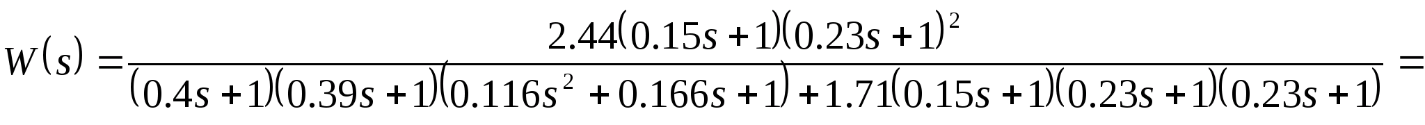 Степень астатизма ν=0. Коэффициент передачи К=1.71. Постоянные времени: Т>1>=0.15, Т>2>=0.23, Т>3>=0.23, Т>4>=0.4, Т>5>=0.39, Т>6>=0.34, ξ=0.24.