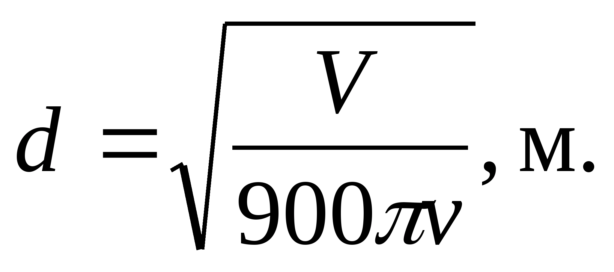 Діаметр трубопроводу, що задовільняє технологічним вимогам, розраховується за формулою: