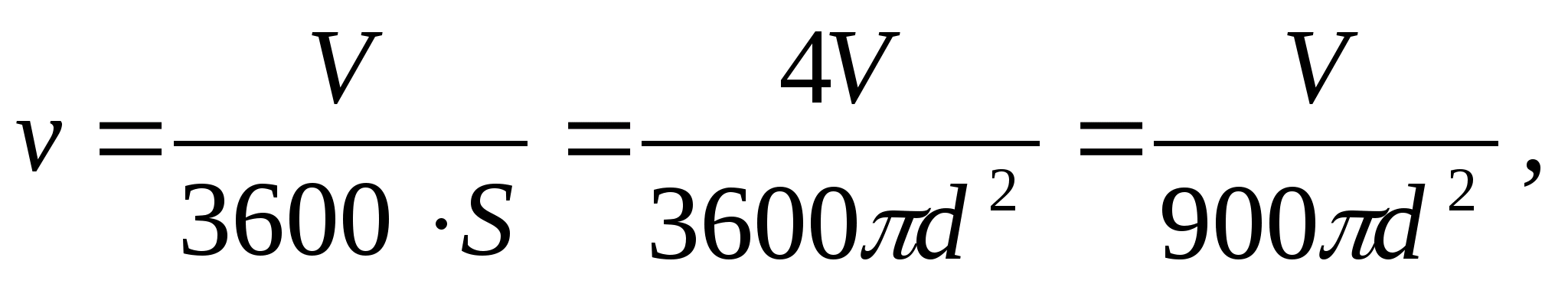 Швидкість руху рідини по трубопроводах визначають із рівняння витрат, м/с:
