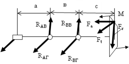Для определения нагрузок, действующих на опоры, вал на подшипниках заменяем балкой на опорах.