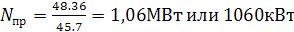И, наконец, мощность, отнесенная к валу двигателя будет,