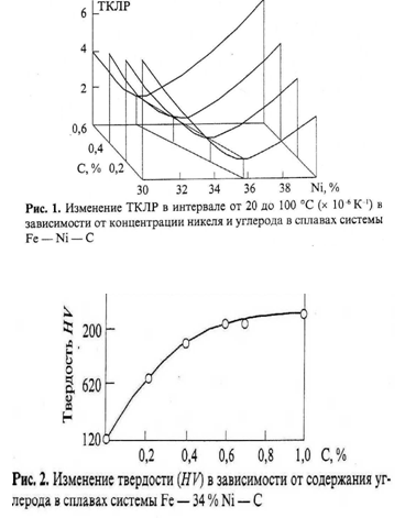 Очень важно, что добавки углерода в железоникелевые сплавы расширяют температурный диапазон, в котором сохраняется пониженное значение ТКЛР.