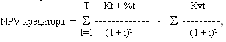 Целесообразность кредитования банком предприятия, реализующего проект, определяется положительной величиной NPV потока, в котором оттоками являются средства, предоставляемые банком по кредитной линии (или кредиту), а притоками - возврат кредитных ресурсов вместе с процентами.