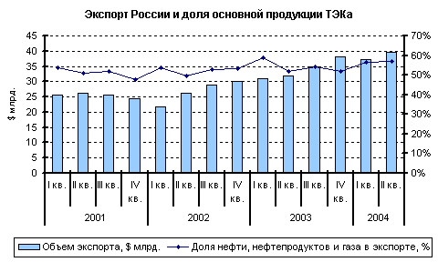 Положительное сальдо торгового баланса по отношению к показателю I полугодия 2003 г. выросло на 20,1% до $34,7 млрд. В частности, экспорт вырос на 22,2% и составил $76,8 млрд., а импорт на 24,1% до $42,1 млрд. В том числе во II квартале сальдо торгового баланса составило $16,6 млрд., увеличившись на 21,7% к аналогичному периоду прошлого года.