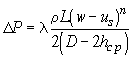 (где DP v потери напора; L v длина трубы; r v плотность газа; w v среднерасходная скорость газа; us=1.15uпл v поверхностная скорость пленки жидкости; uпл v среднерасходная скорость пленки жидкости; hср v средняя толщина пленки жидкости; D v диаметр трубы; l v коэффициент гидравлического сопротивления; n v показатель степени) возникают проблемы в определении коэффициента гидравлического сопротивления на межфазной поверхности.