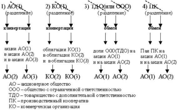 2)путем конвертации в облигации коммерческой организации, созданной в результате выделения облигаций коммерческой организации, реорганизованной путем такого выделения;