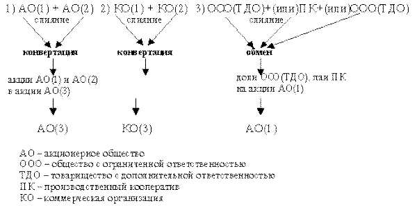 Следует отметить, что в ст. 16 Закона "Об акционерных обществах" закреплены положения о порядке слияния, только акционерных обществ, хотя в ст. 8 не исключается порядок создания акционерного общества при слиянии юридических лиц иной организационно-правовой формы.
