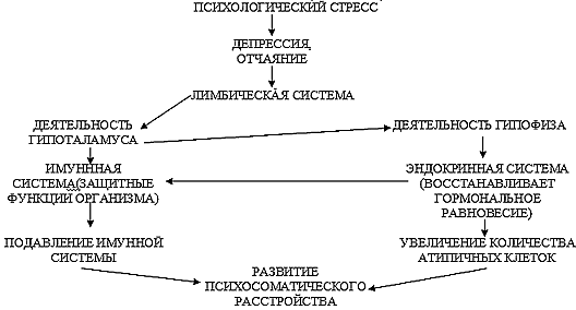 Схема развития соматического заболевания вызванного нервным перенапряжением (стрессом)