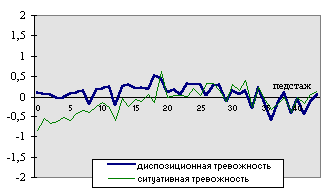 Как и ожидалось, зависимость диспозиционной тревожности как свойства личности от педагогического стажа имеет более сглаженный характер. У ситуативной тревожности более выражена параболическая зависимость от педстажа. Мы предположили, что зависимость ситуативной тревожности от педагогического стажа не носит линейного характера: в начале учительской деятельности социальная тревожность невысока, затем, по мере работы в школе, она возрастает, но педагоги с большим опытом работы уже не испытывают высокого психосоматического напряжения.