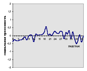 Предположение, что социальная и ситуативная тревожность учителей устойчиво повышается с возрастом, как это происходит по переменной "педагогический стаж", не подтверждается. (Чтобы избежать эффекта автокорреляции, были построены две модели: одна без независимой переменной "возраст", другая без переменной "педстаж". По критерию Фишера модель с переменной "педстаж" лучше объясняет полученные результаты, а введение переменной "возраст" ухудшает линейную модель). Аналогичная модель с теми же независимыми факторами была построена для суммарного показателя социальной тревожности. Все описанные влияния, их характер и значимость не изменились. Таким образом, мы можем утверждать, что именно педагогический стаж оказывает существенное влияние на уровень социальной тревожности педагога. Однако интересно проследить, как это влияние сказывается на всем протяжении педагогической карьеры.