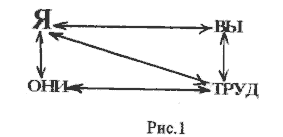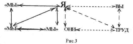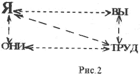 В результате формирования физической и психической зависимости помимо психологической деформации отношений в самом ядре личности “Я” неизбежно нарушаются практически все связи в системе отношений: “ВЫ”, “ОНИ”, “ТРУД”. И тогда личностный комплекс можно представить в виде следующей схемы: (рис.2)