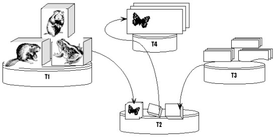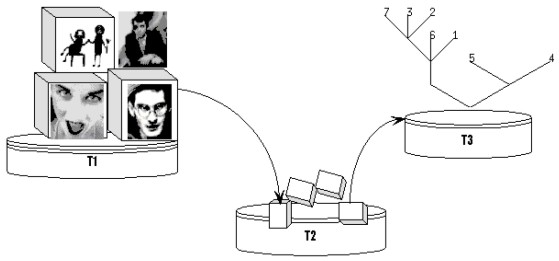 Третий этап заключался в связывании материалов коллекции с самостоятельной деятельностью студентов. Для решения этой задачи мы использовали собственную разработку сетевого варианта техники репертуарных решеток. Это психологическая технология для изучения системы индивидуальных представлений, основанная на психологии персональных конструктов Дж. Келли. При работе с решеткой, человек в явном или неявном виде заполняет своими субъективными оценками матрицу, по столбцам которой варьируют различные объекты (элементы, заданные с помощью специальной инструкции), а по строкам - различные признаки, отражающие личностные конструкты. С помощью многомерного анализа решеток репрезентируются индивидуальные и групповые когнитивные модели. Последние представляются в виде кластерных деревьев или семантических пространств. Специально созданное программное обеспечение позволяет использовать в процедуре классификации видеофрагменты, так же как и другие коллекционные записи [Travina L., Patarakin E., 1997, Патаракин Е.Д., Борисов В.В., 1998].