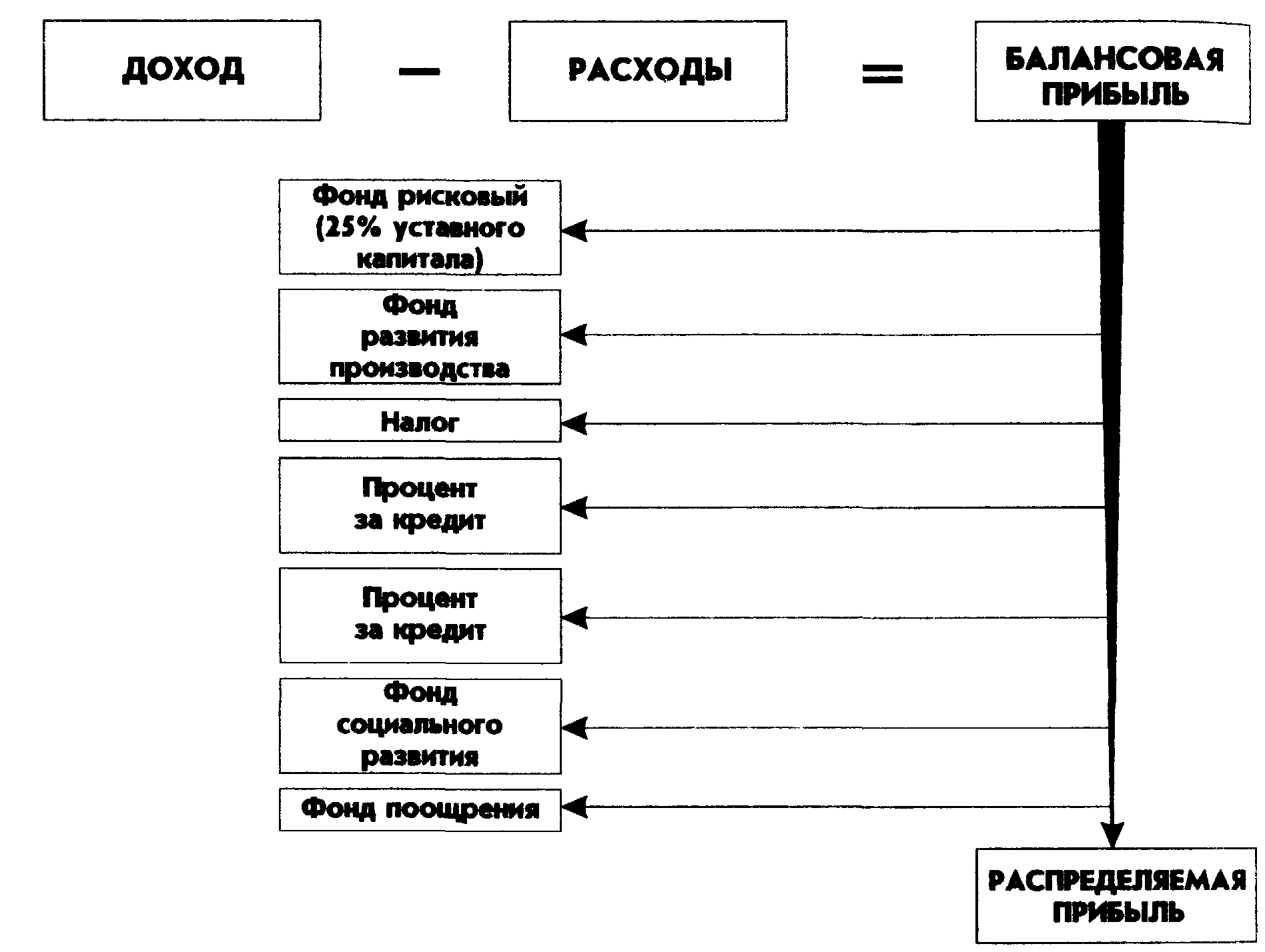 Разница между выручкой от реализованной продукции СП и себестоимостью произведенной продукции (все расходы, которые несет СП, в том числе и управленческие) составляет его балансовую прибыль. Из балансовой прибыли производятся отчисления в резервный фонд Размеры ежегодных отчислений в последний, как правило, определяются в уставе или договоре о создании СП (или же правление каждый год определяет эти размеры).