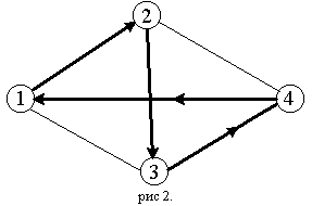 Посмотрим, как поведет себя при решении ЗК жадный алгоритм. Здесь он превратится в стратегию «иди в ближайший (в который еще не входил) город». Жадный алгоритм, очевидно, бессилен в этой задаче. Рассмотрим для примера сеть на рис. 2, представляющую узкий ромб. Пусть коммивояжер стартует из города 1. Алгоритм «иди вы ближайший город» выведет его в город 2, затем 3, затем 4; на последнем шаге придется платить за жадность, возвращаясь по длинной диагонали ромба. В результате получится не кратчайший, а длиннейший тур.