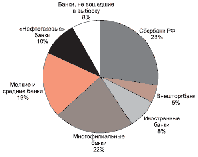 В регионах конкуренция, как правило, идет между Сбербанком и одним-двумя местными банками. Население имеет низкий уровень сбережений и потому придерживается консервативной стратегии их размещения. В этих условиях уровень процентных ставок и разнообразие предлагаемых услуг не играют существенной роли, а успех на рынке фактически зависит от одного фактора— оценки вкладчиками уровня надежности банка. Как и в Москве, она тесно связана с участием государства, в том числе региональных властей в его капитале, а также с размером банка.