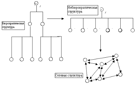 Сравнение бюрократической, небюрократической и сетевой структур.